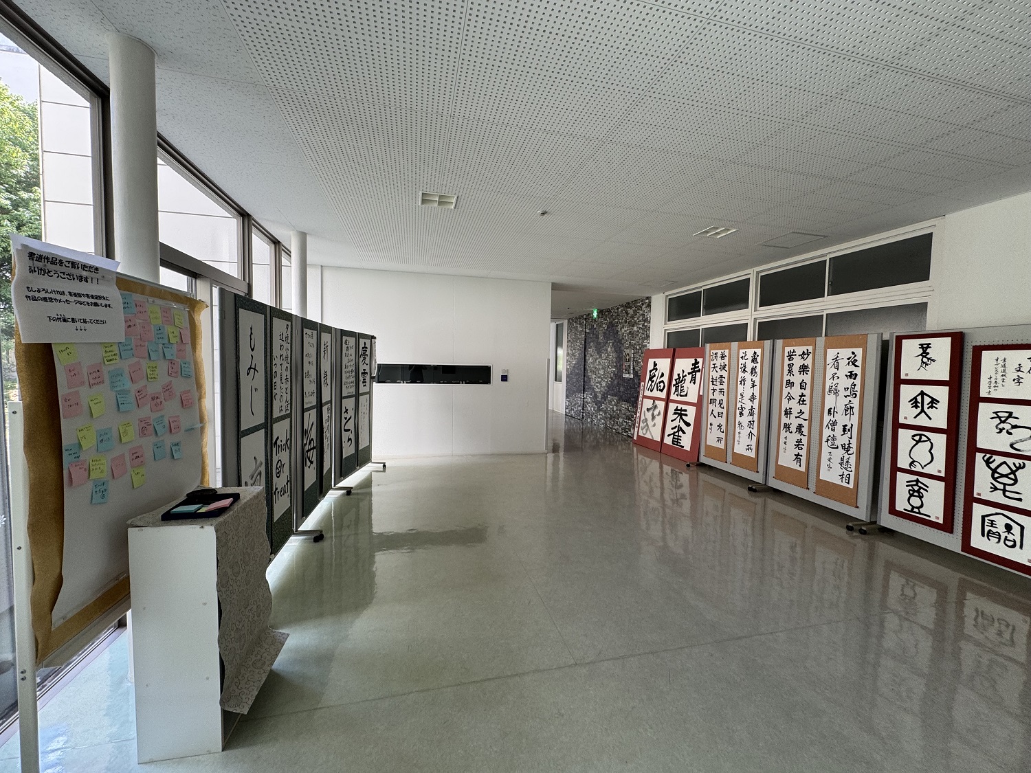 また、みやび棟1階の書道室前には、書道部員や書道授業選択生の個人作品を展示しました。