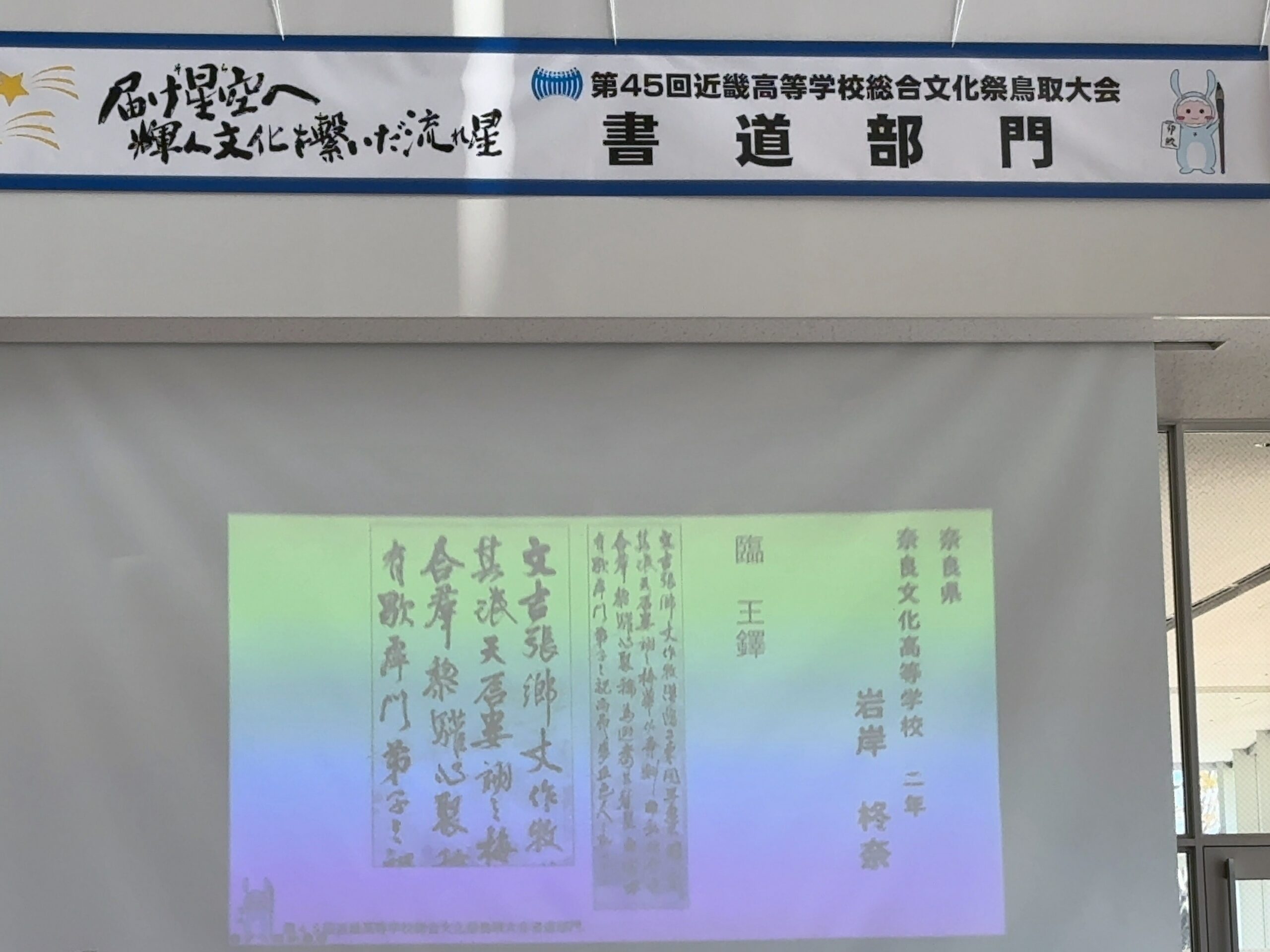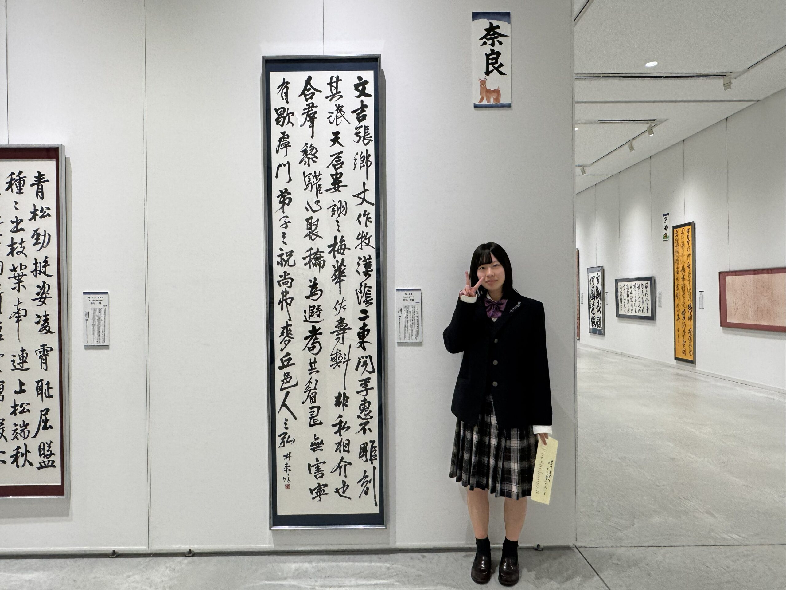 書道部の2年生の岩岸柊奈さんが奈良県代表として選抜され、作品を出品し、奨励賞を受けました。