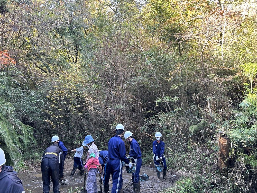 奈良学園郡山キャンパスの敷地内にある里山の中に入り、萌芽更新やビオトープ作りの実習を通して、環境保全について実践的に学びました。