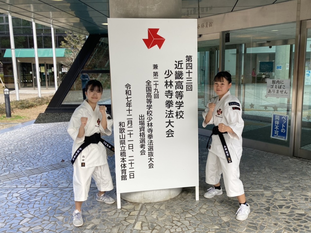 2025年12月20~21日、和歌山県立橋本体育館にて行われた「第43回近畿高等学校少林寺拳法大会 兼 第29回全国高等学校少林寺拳法選抜大会出場資格選考会」で、奈良文化高校2年生の余部梨葉さんと松田紗季さんが女子自由組演武の部に出場し、見事第3位という成績を収めました。
