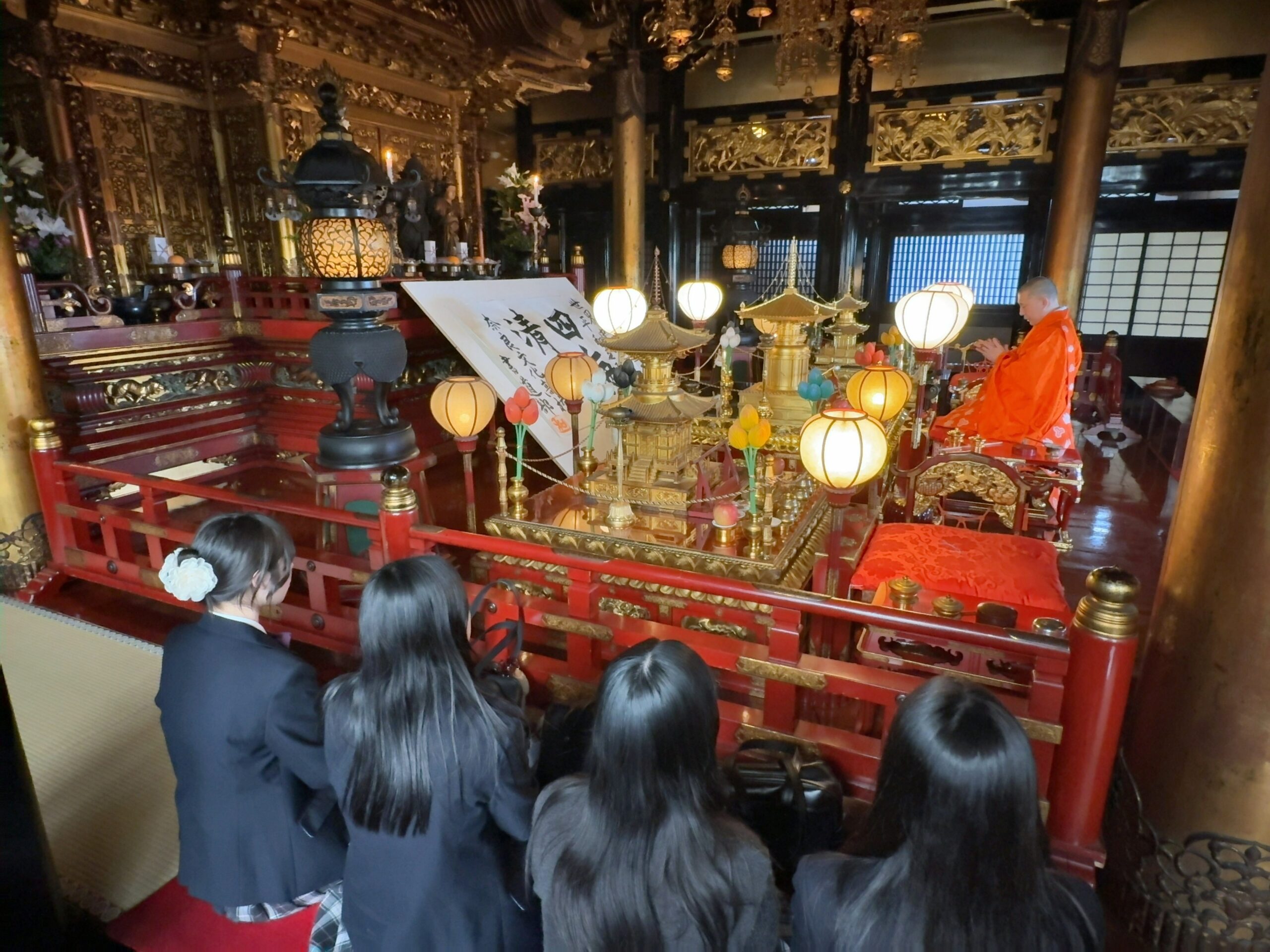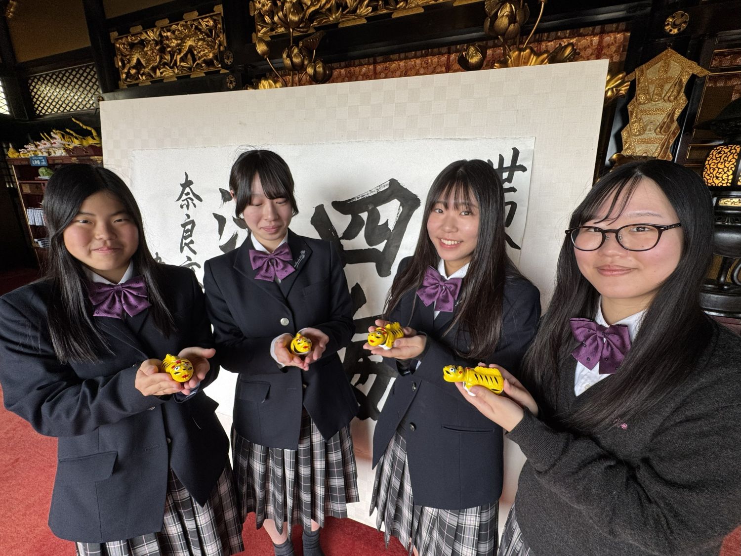 2026年4月18日(土)、和文化の普及と平和活動を行う市民団体「和プロジェクトTAISHI」主催の催事「第9回4.3TAISHI」が信貴山朝護孫子寺にて行われ、奈良文化高校書道部が平和への願いを込めて書いた作品を奉納しました。