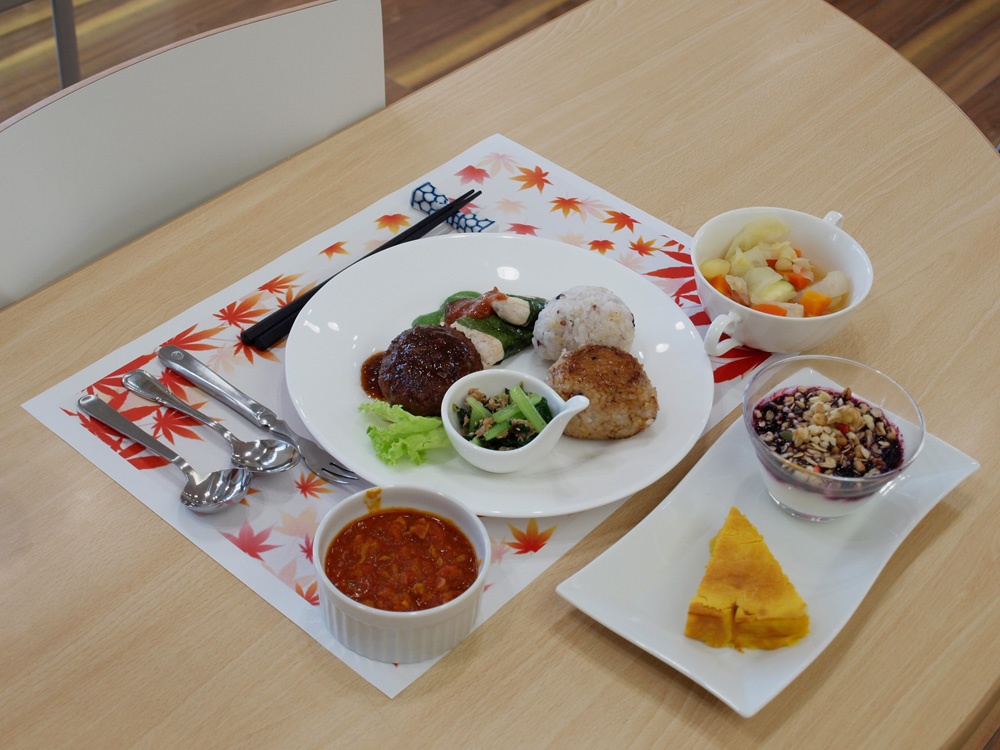 メニューは、生徒一人ひとりの提案の中から、「具だくさんコンソメスープ」「小松菜とツナの香り添え」「鶏むね肉のしそ巻き」「奈良文化味噌煮込みハンバーグ」「スパイシーポークカレー」「雑穀焼きおにぎり&おにぎり」「かぼちゃのチーズケーキ」「マルベリージャムとヨーグルトのヘルシーミニパフェ」の8品が選ばれました。