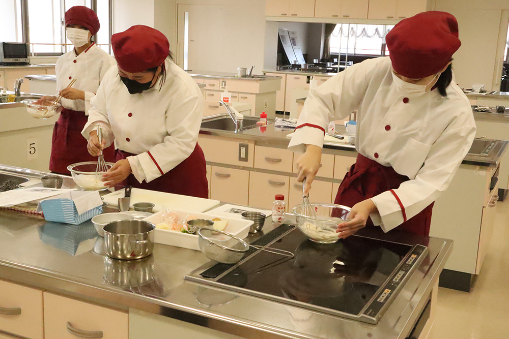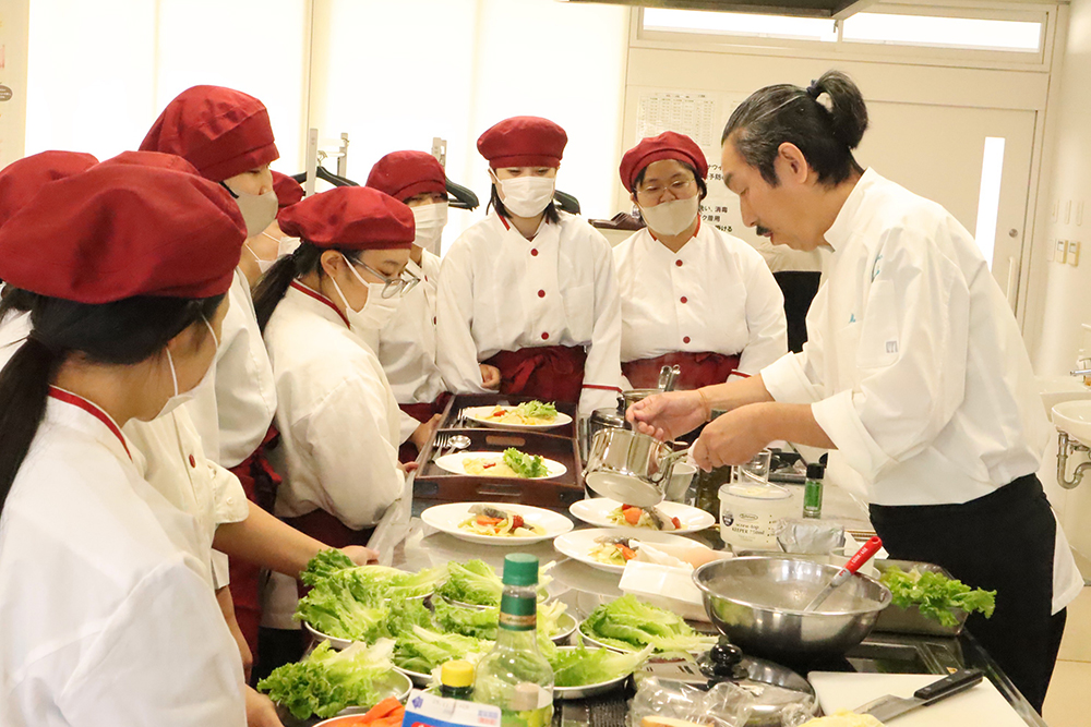授業の冒頭で丸田シェフは、「この授業では細かな作り方は言いません。味の感じ方は人それぞれ。自分のやり方で考えて、楽しんでほしい」と話され、生徒たちも、自由な発想で調理と向き合っていました。