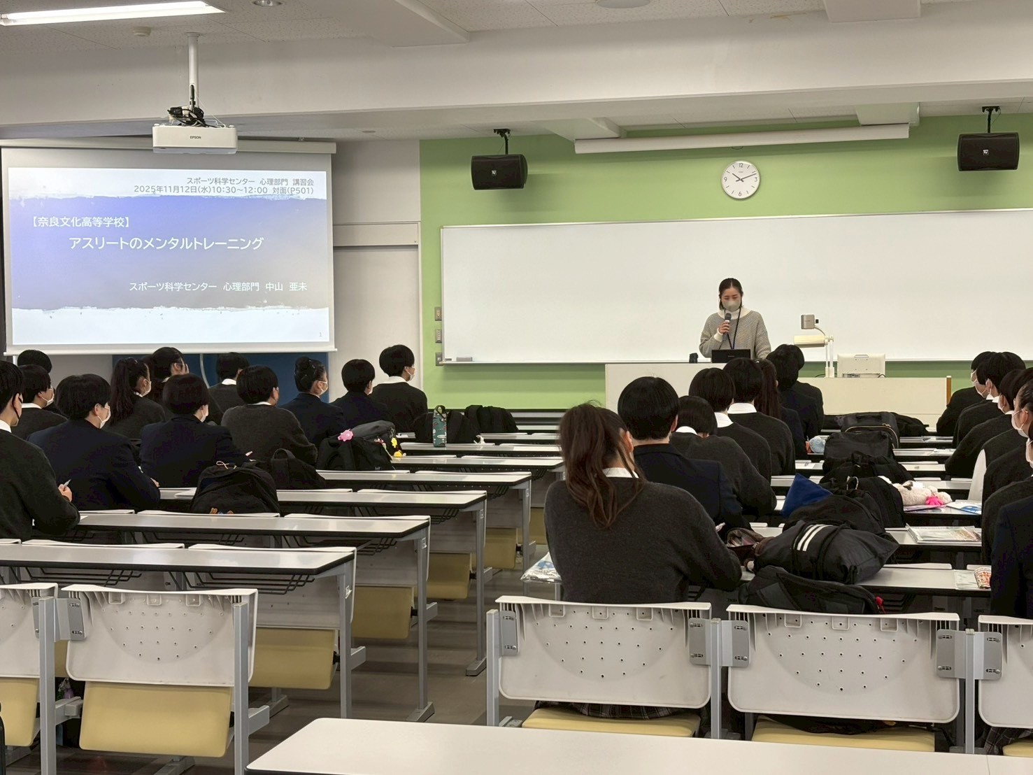 2025年11月12日(水)スポーツ特進コースの1・2・3年生がスポーツ講習会Ⅱの授業で大阪体育大学を訪問。午前は「アスリートのメンタルトレーニング」の講義、午後は「スピード・アジリティのトレーニング」実技指導を受けました。