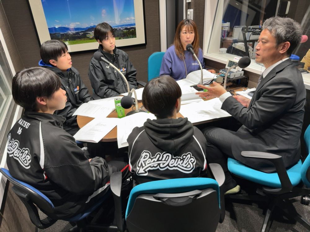 11月18日(火)の第11回目の放送は、ウィンターカップ出場を決めたバスケットボール部の2人と、春高バレー出場を決めたバレーボール部の2人でした。いつも支えてくださる保護者の方への感謝の思いや仲間への気持ち、県予選決勝に向けてこれまで取り組んできたことや本戦に向けての意気込みなどを聞かせてくれました。