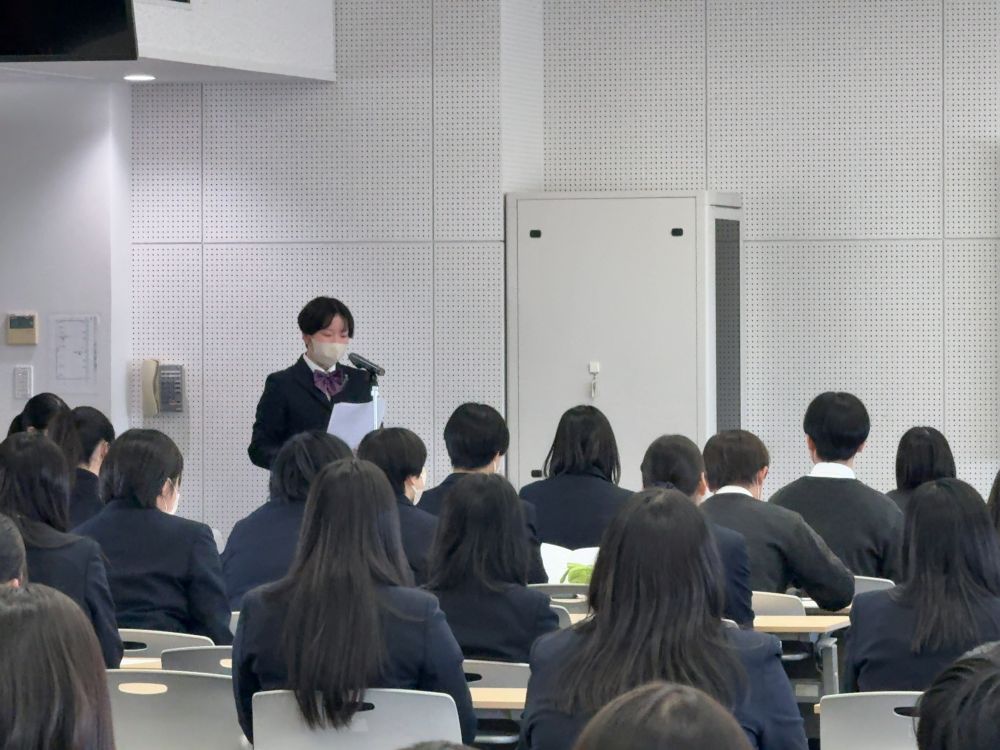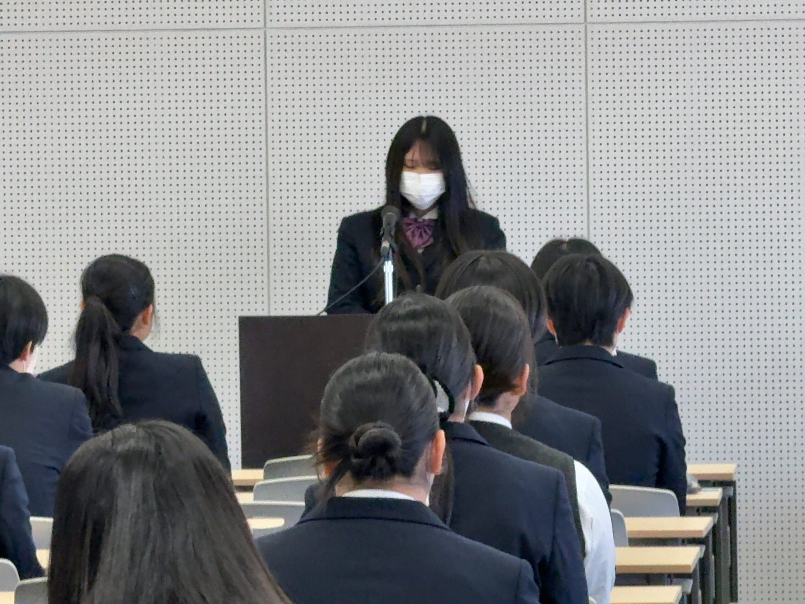 3年生はこの冬休み、「3年間をふりかえって」の作文を書いていました。入学前に志した夢、高校生活の中で見つけた目標、楽しかったことや今も頑張っていることなど、それぞれの思いが詰まったものでした。その中から何人かがみんなの前で発表してくれました。