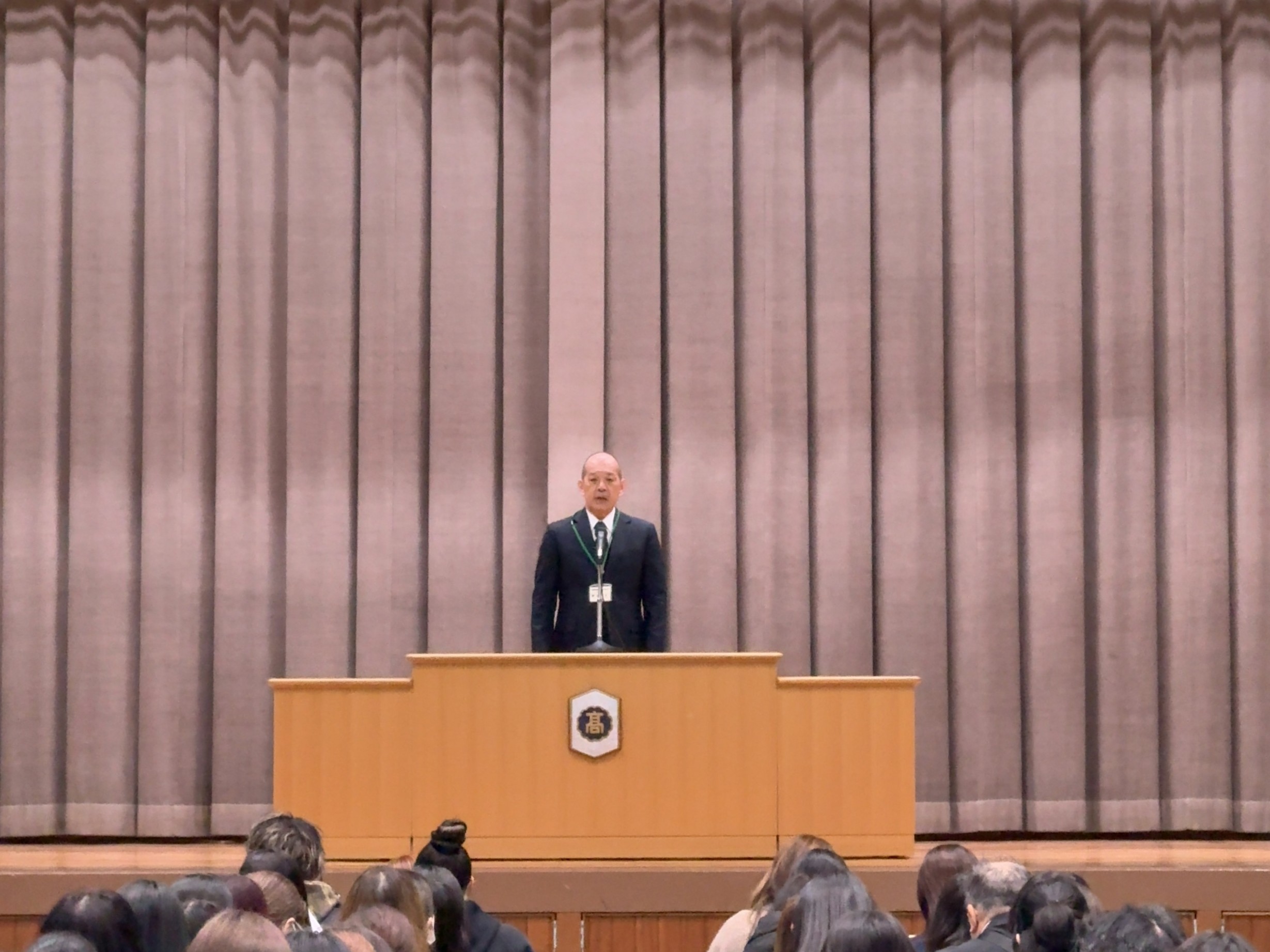 教頭からの挨拶に始まり、教務部長からは入学式・学習について、生徒指導部長からは生徒心得、育友会会長からは育友会活動の案内、事務長からは授業料等納付金などについての説明を行いました。